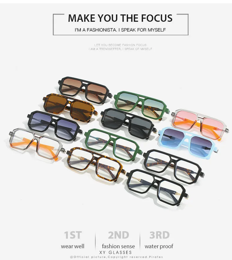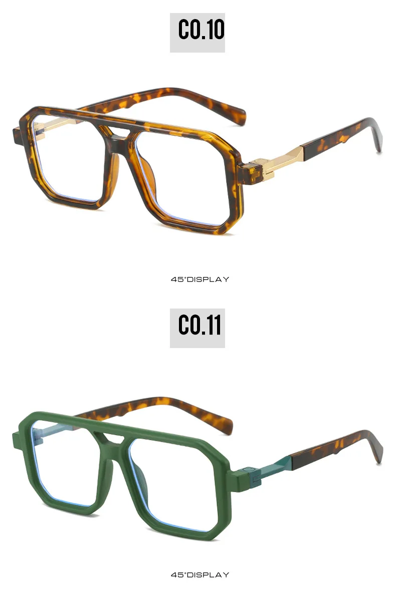 • Square frame style – Creates a bold, structured look that enhances facial features.